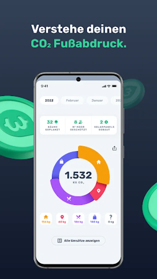 With the help of your connected bank account, you can see how much CO2 your consumption decisions cause in everyday life and receive monthly insights.