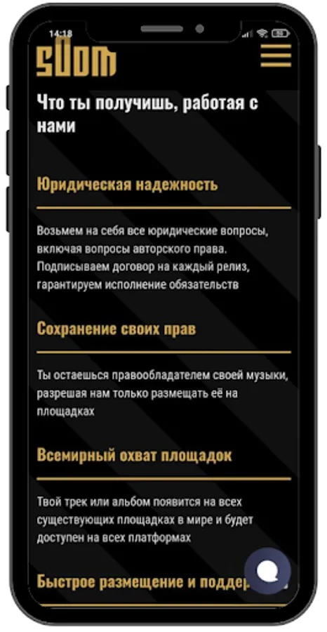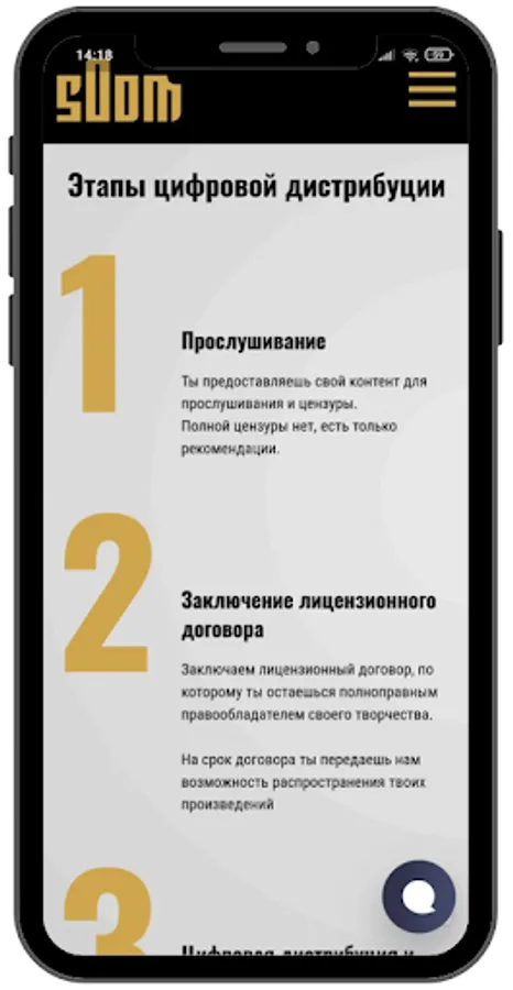sOom cooperates with all digital online stores such as Apple Music, VK Music, Yandex Music, Sound, Spotify, MTS Music, Deezer, iTunes, Saavn, Gaana, Amazon Music and all other music streaming services to distribute music by different artists among listeners around the world.