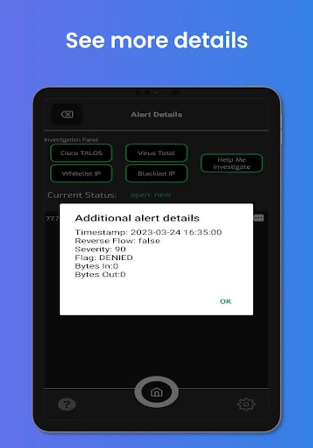 Finally customer can ask for the help with the investigations for specific alarms. Dedicated Security Operations Center (SOC) team will help to understand the impact and possible remediation.