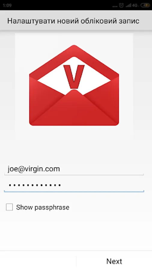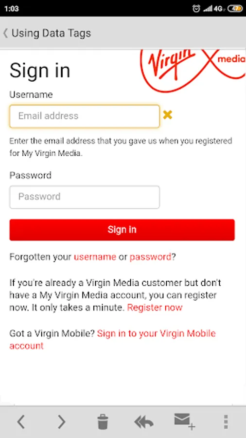 Log in to Virgin Mail with your e-mail address and password.