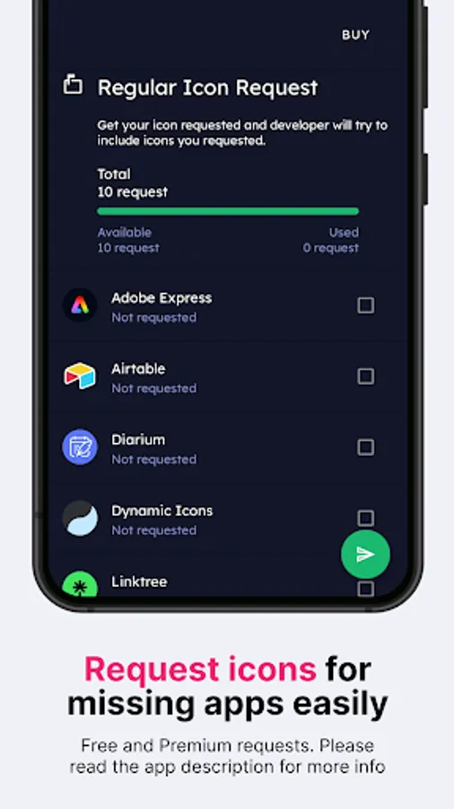 Don't worry; we offer a full refund within the first 7 (seven!) days of purchasing our pack. No questions asked! But, if you're willing to wait a little longer, we update our app every week or two, so many more apps, including those you've missed, will be covered. We also offer Premium icon requests if you want to skip a line. Those apps are included in the next (or second next) release from the moment they are sent to us.