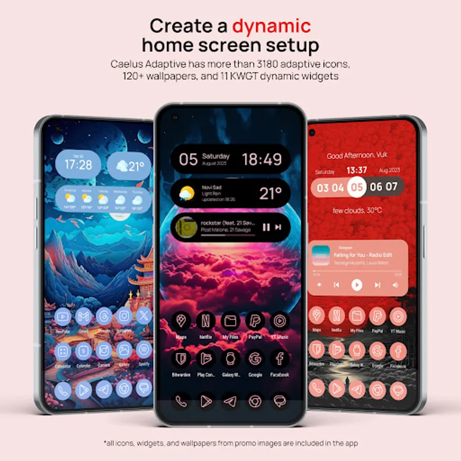 Caelus Adaptive is an Adaptive (Material You Themed) Android icon pack, a one-of-a-kind and elegant collection of pixel-perfect glyph icons appropriate for any modern Android phone. These icons include clean lines and a minimalist style that will boost the look and feel of your homescreen and app drawer, with a focus on simplicity and elegance. To complete the aesthetic of your homescreen, the collection includes 3234 icons, 130 wallpapers, and 11 KWGT widgets. You receive material from three (usually) separate applications for the price of one! Our Caelus Adaptive icon pack can elevate your homescreen style to new heights! Please keep in mind that Material You icons are only accessible for Android 12 and up. These icons will be adaptive with predefined colors on Android 8 to Android 11 (they will change shape and go with the system theme - light or dark).