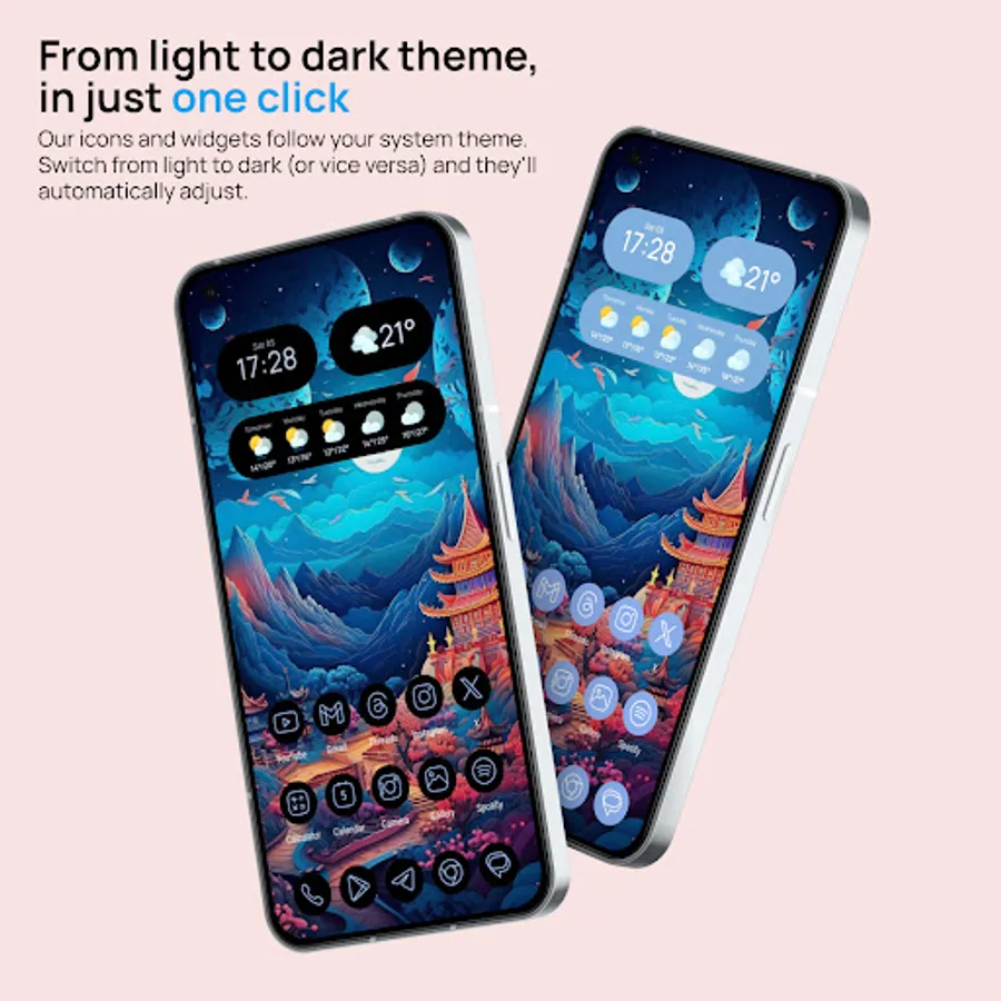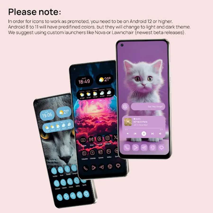 You can apply our icon pack on almost any custom launcher (Nova launcher, Lawnchair, Niagara, Smart Launcher, etc.) and some default launchers like the Samsung OneUI launcher (www.bit.ly/IconsOneUI), OnePlus launcher, Oppo's Color OS, Nothing launcher, etc.
