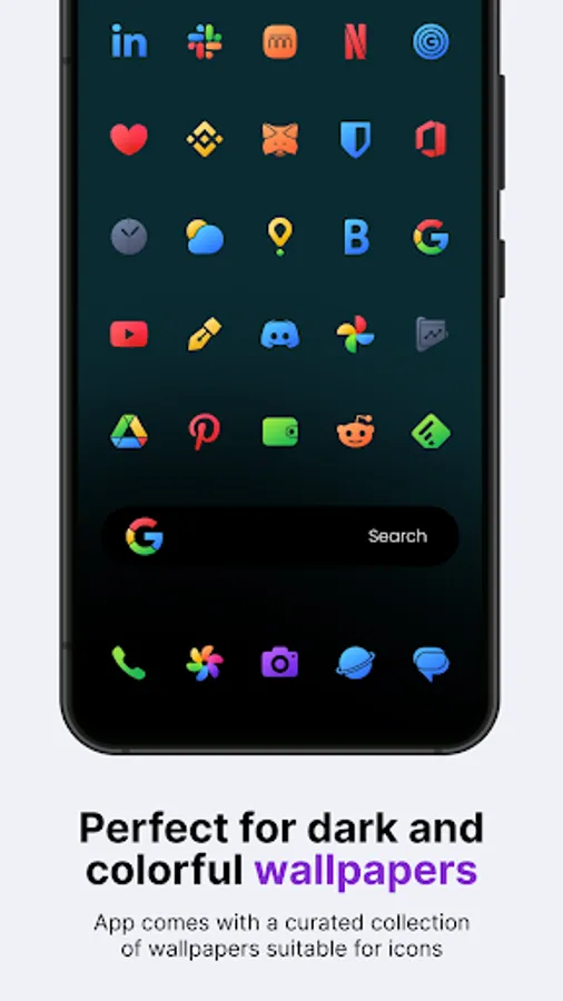 Let us introduce Lena, our shapeless android icon pack—a unique and stylish collection of colorful glyph icons perfect for any modern Android phone. With a focus on simplicity and elegance, these icons feature clean lines and a minimalist design that will elevate the look and feel of your homescreen and app drawer. The pack includes over 3,410 icons, 90 wallpapers, and 7 KWGT widgets to complete the look of your homescreen. For the price of one app, you get content from three different apps! Our shapeless Lena icon pack will take your homescreen design to the next level!