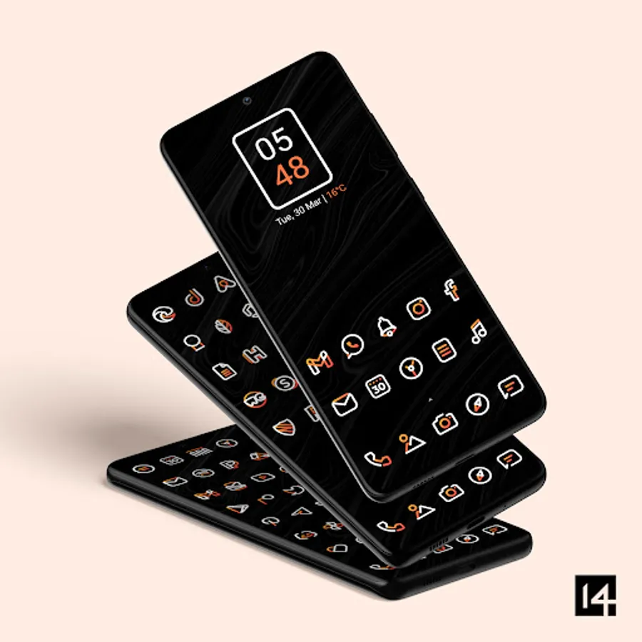 Aline Orange icon pack is a set of custom bold linear icons for your home screen and app drawer. You can apply it on almost any custom launcher (Nova launcher, Lawnchair, Niagara, etc.) and some default launchers like the Samsung OneUI launcher (via Theme Park app), OnePlus launcher, Oppo’s Color OS, Nothing launcher, etc.