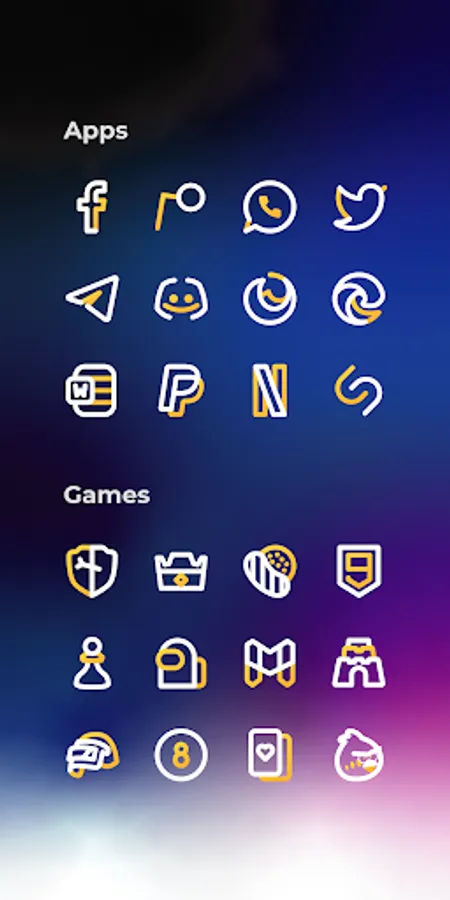 Aline Yellow icon pack has 2688 icons, 20 custom wallpapers, and 5 KWGT widgets, so it’s all you need to personalize your phone how you like it. For the price of one app, you get content from three different apps. Aline Yellow icons are linear, combining pure white and gradient yellow colors, so it goes well with dark and amoled wallpapers. *To apply KWGT widgets, you need KWGT and KWGT Pro apps.