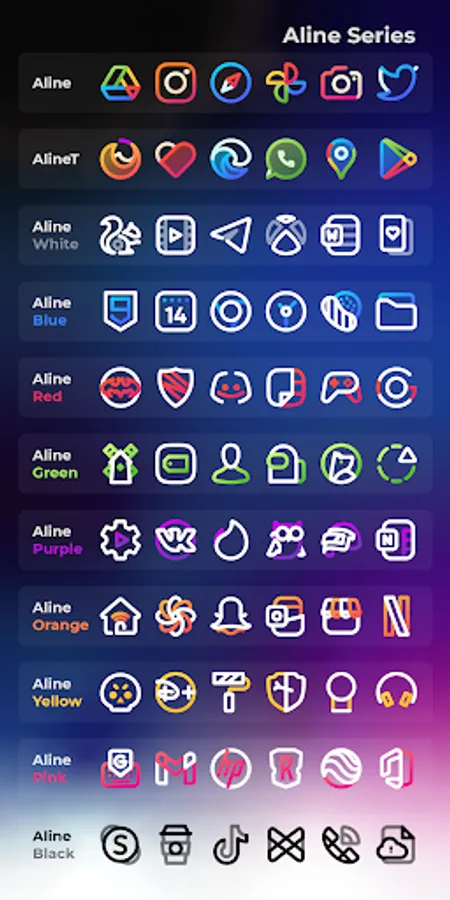 Aline Yellow icon pack is a set of custom bold linear icons for your home screen and app drawer. You can apply it on almost any custom launcher (Nova launcher, Lawnchair, Niagara, etc.) and some default launchers like the Samsung OneUI launcher (via Theme Park app), OnePlus launcher, Oppo’s Color OS, Nothing launcher, etc.