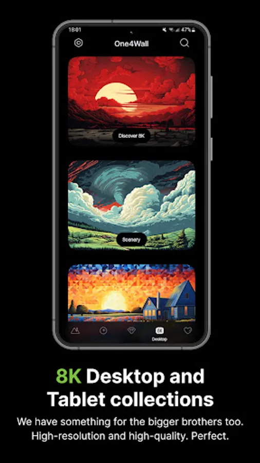 Introducing our revolutionary One4Wall wallpaper app, packed with stunning, AI-generated, and hand-edited wallpapers that will transform your device into a visual masterpiece! You can choose from hundreds of free wallpapers and thousands of premium ones! Make your homescreen and your lock screen as beautiful as possible!
