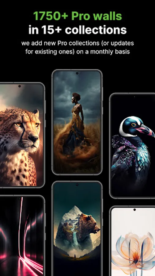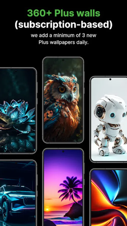 The Free Wallpapers collection is updated daily with at least three new walls. The Plus (subscription-based) collection is updated with three new walls daily. The Pro collections and 8K Desktop collections are updated less frequently, as they already have a lot of walls inside, but you can count on monthly updates and new collections over time.