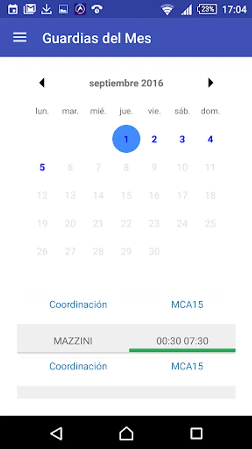 Guards plan UCM allows physicians to plan their guards, manage licenses and receive news on the device.