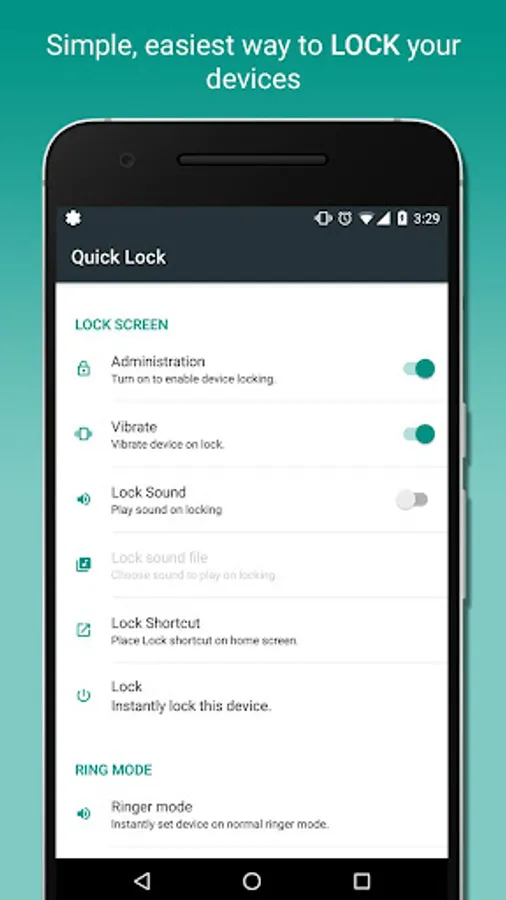 - One touch lock using shortcut or notification.