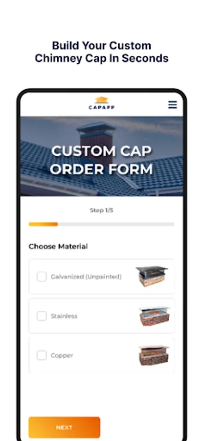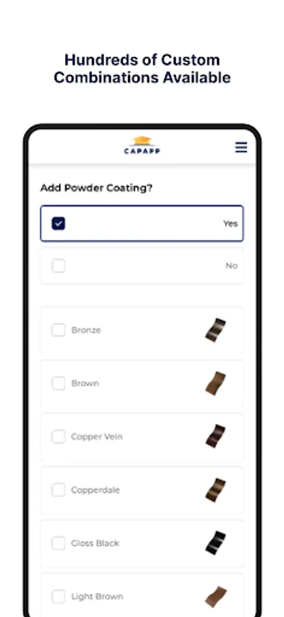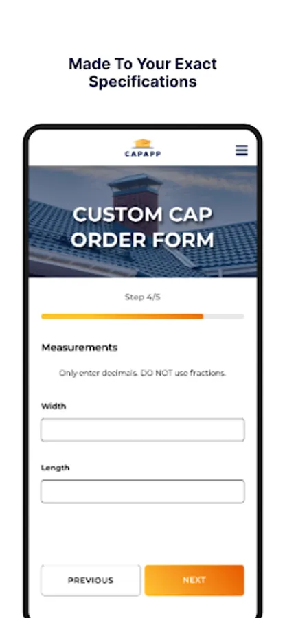 The CapApp makes it as easy as selecting whatever you would like, typing in your exact measurements, and submitting your order. You can do this all in under a minute, and real-time track your order from any device.