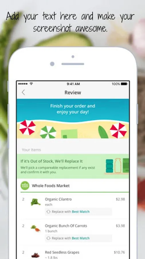 Free your time from the supermarkets’ long queues, the search for parking spaces and carrying it all home. Our user-friendly app is packed with powerful features that will transform your grocery shopping experience.