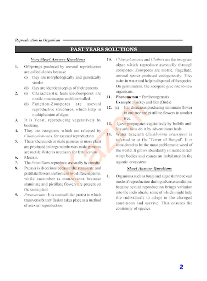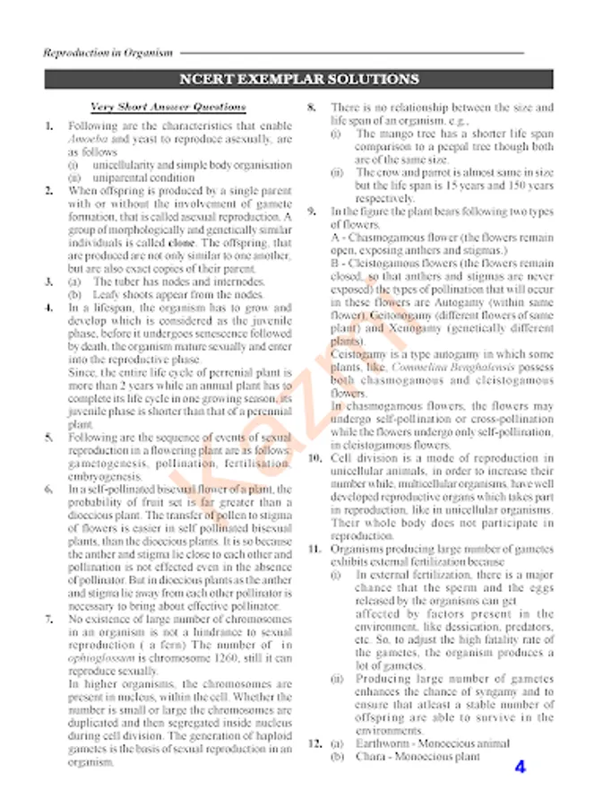 Class 12 Biology Exemplar Solutions in English + Important Solved Questions in English