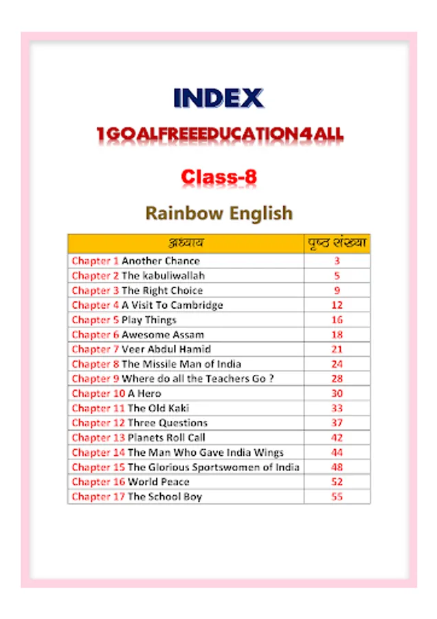 Contents of the 8th Class Rainbow English Solution UP-Board