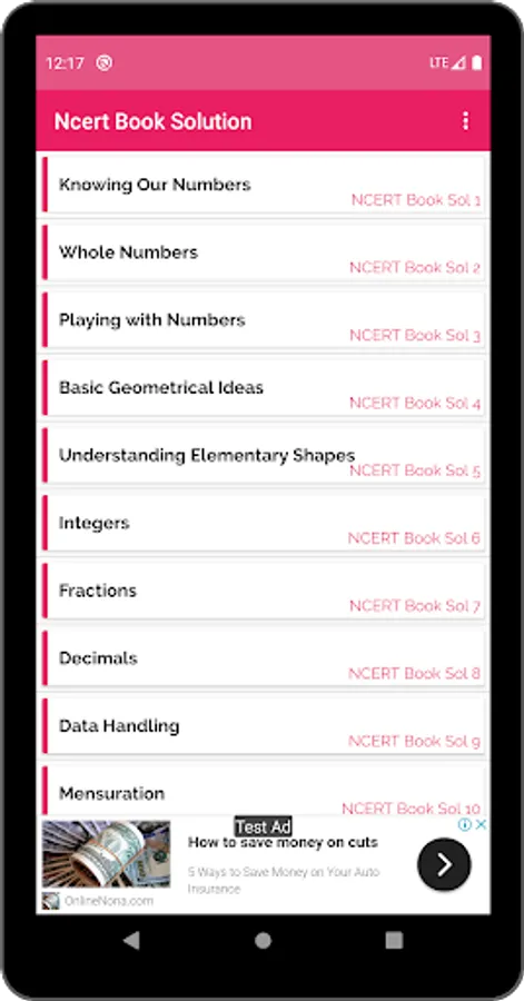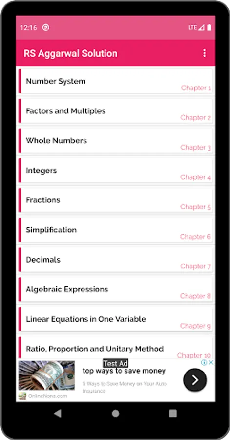 Content of App RS Aggarwal & NCERT Class 6 Math Solution:
