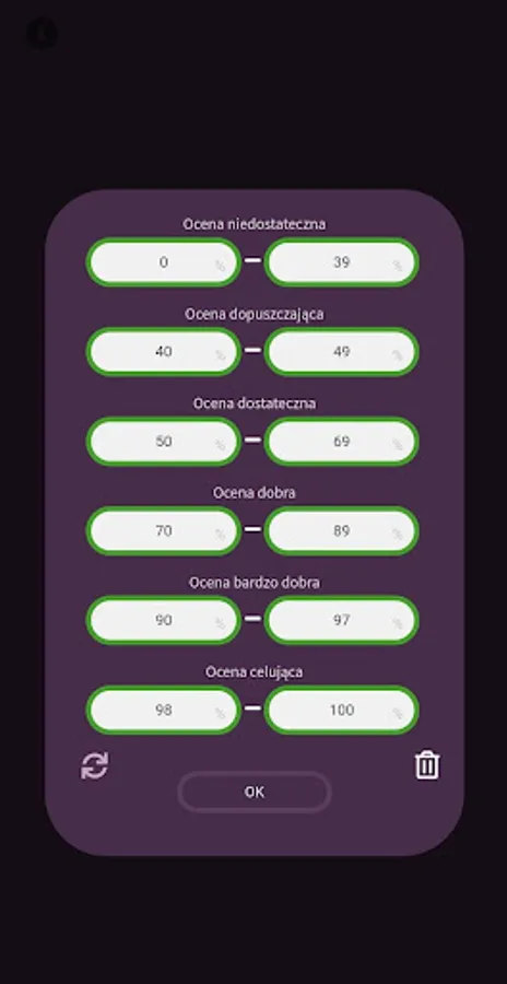The Assessment Calculator app is designed to help you calculate percentages and ratings. Interest thresholds are 100% editable which gives you many options - you can customize them to your needs.