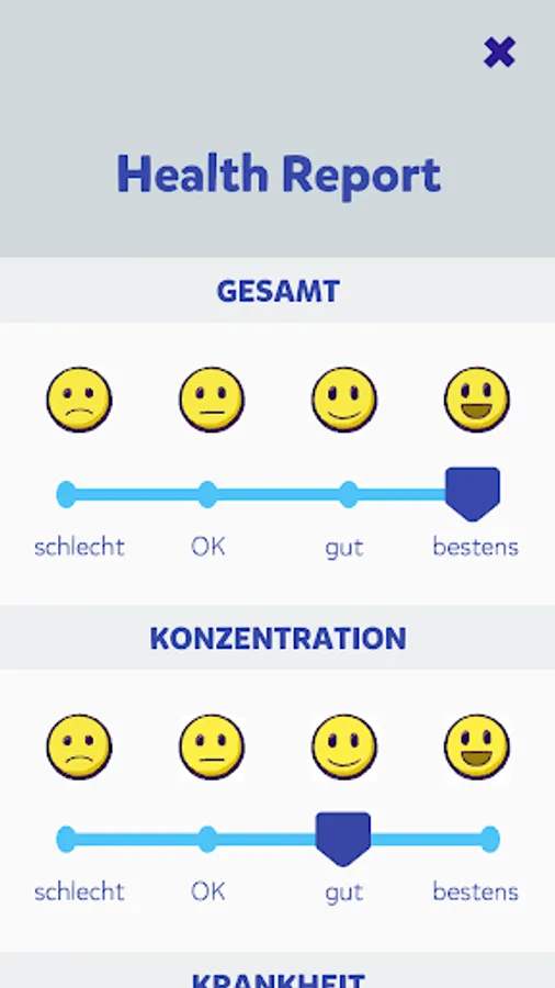 Over 5 games and a simple health report, our subjects can relate their gaming performance to their health over a longer period of time.
