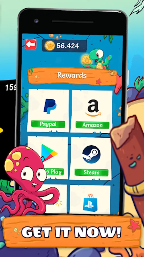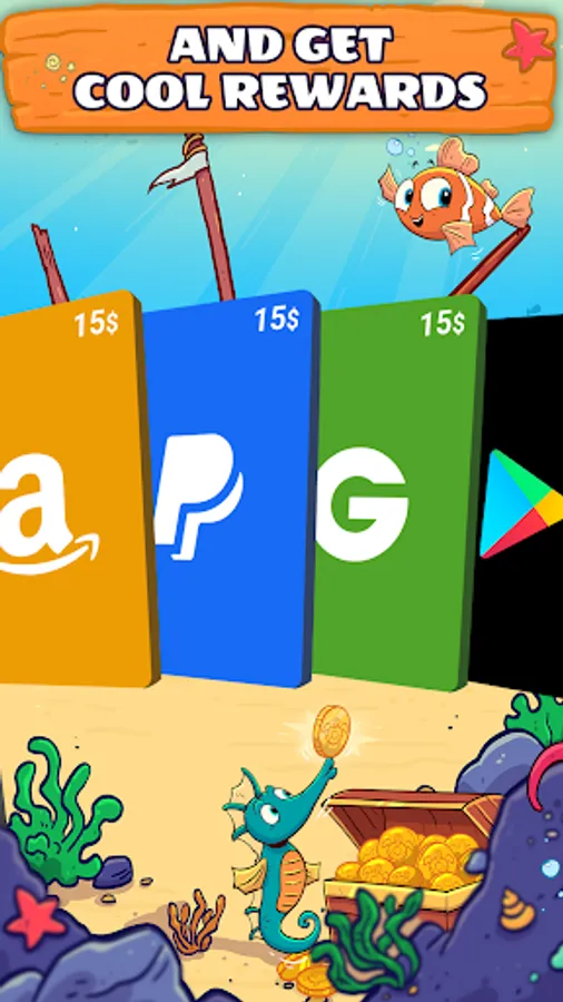 Discover new and popular games every day from our list ➡ spend time playing them and earn coins ➡ trade coins for gift cards such as Amazon gift cards, Google Play gift cards, PlayStation gift cards, Steam gift cards, vouchers, coupons, or you can simply cash out using your PayPal account.