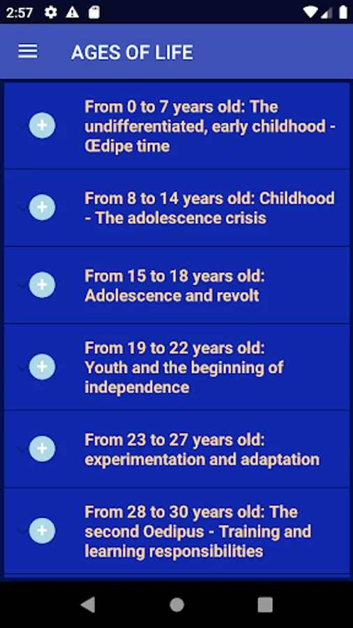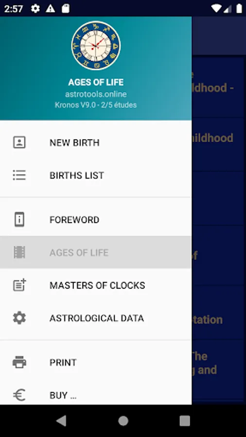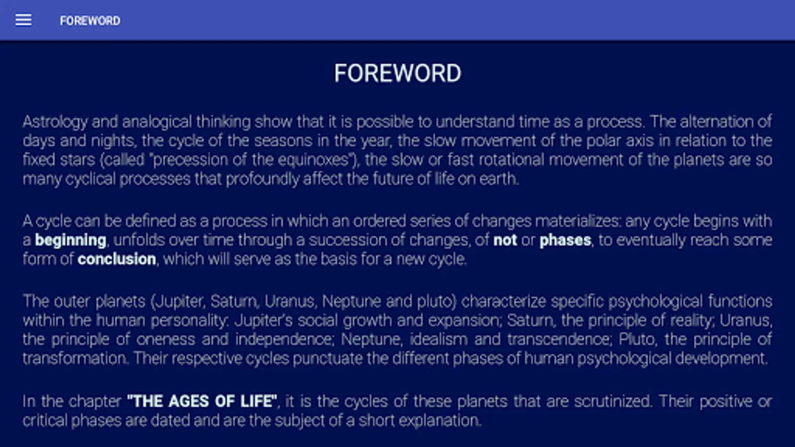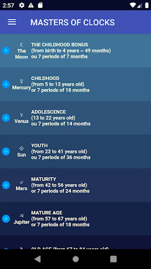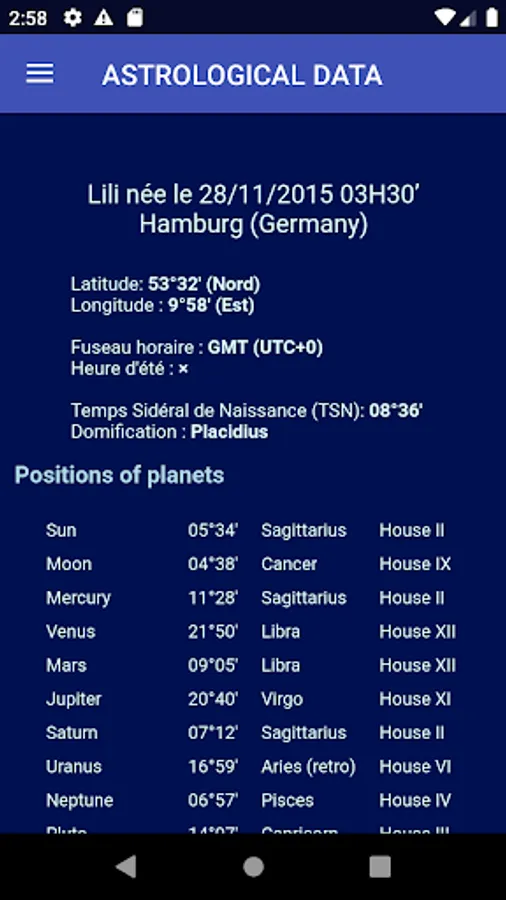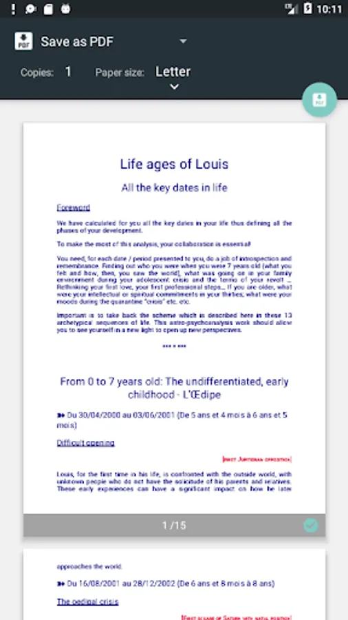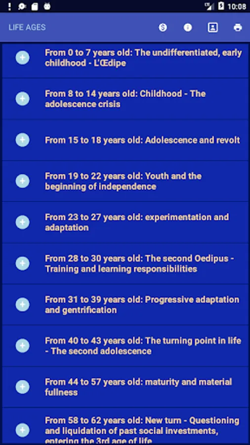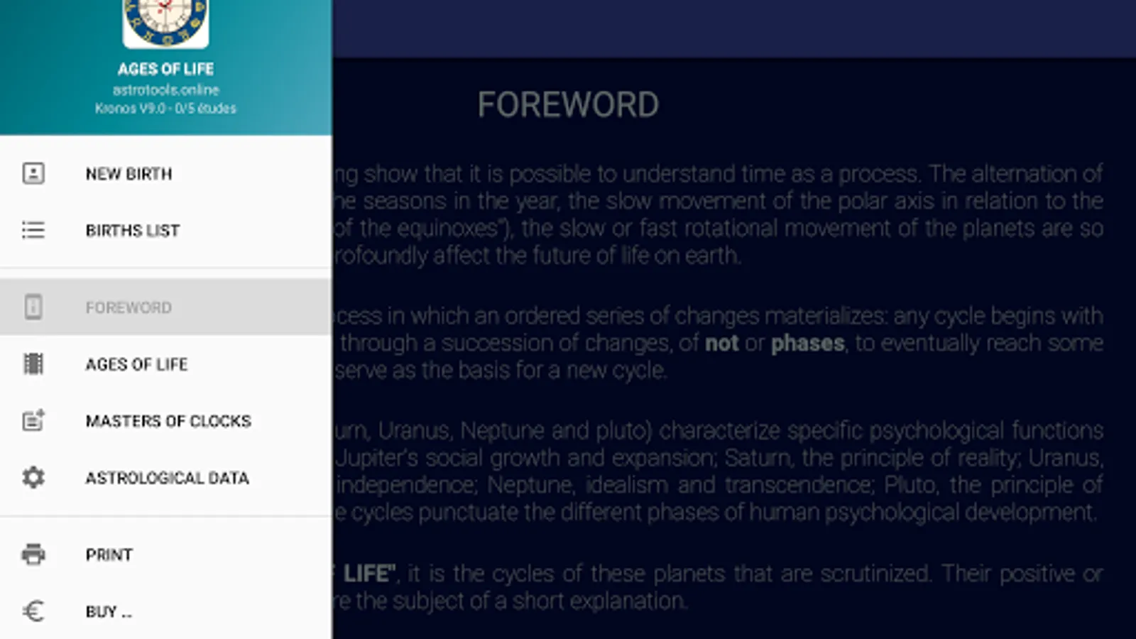 It calculates all the key dates and all the periods which marked or will mark your psychological maturation. Each of these periods is dated and commented.