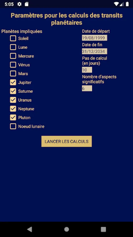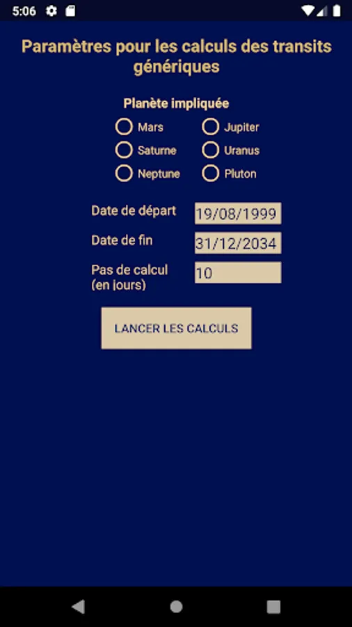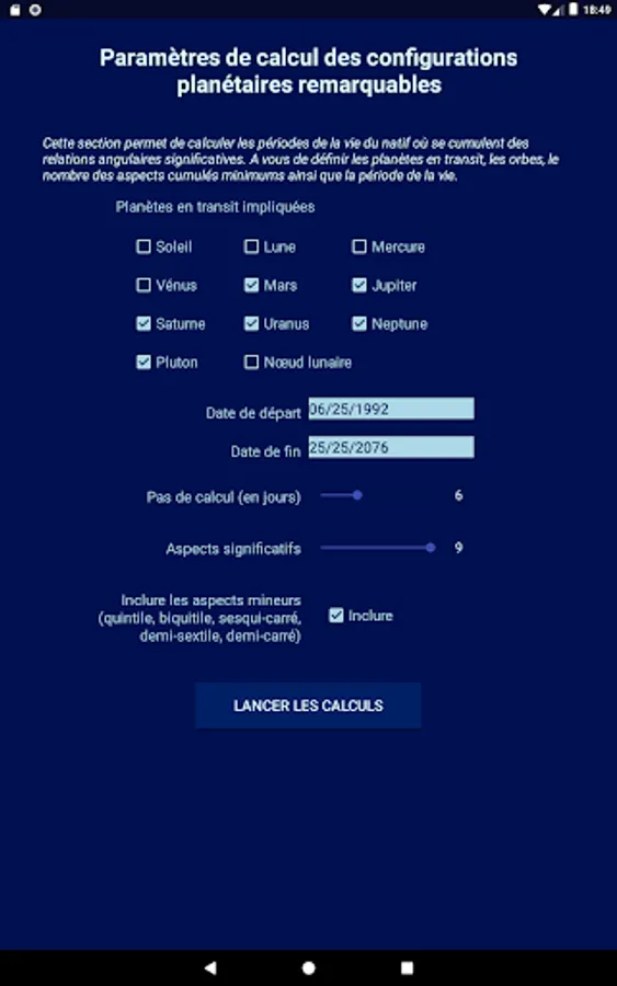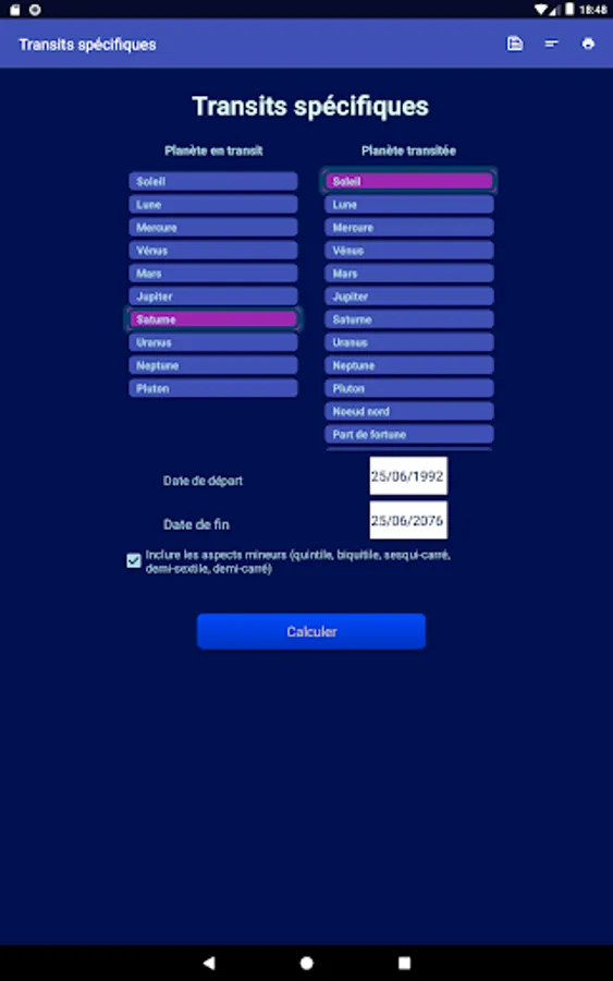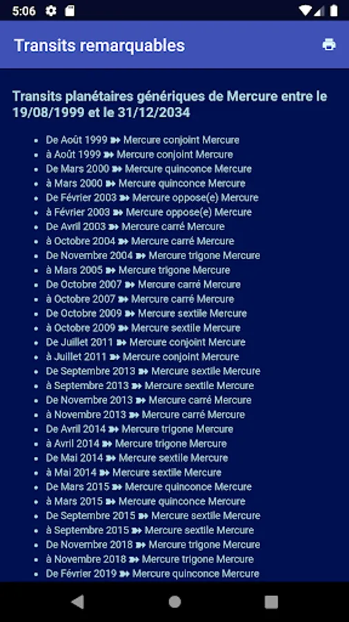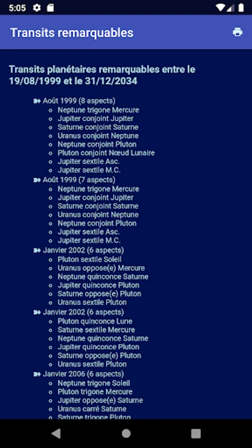 ➼ Calculation of remarkable planetary transit configurations throughout life or for a particular period