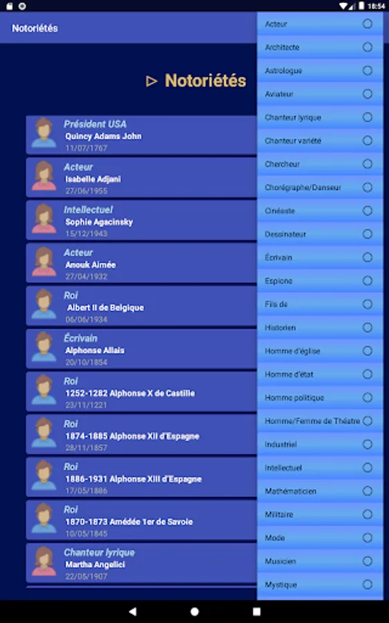 A database of 650 births of well-known people (writers, artists, musicians, intellectuals, etc.) is available for your research and verification work.