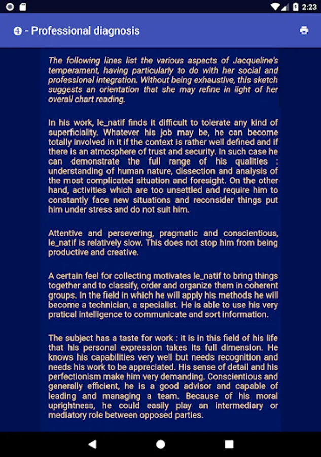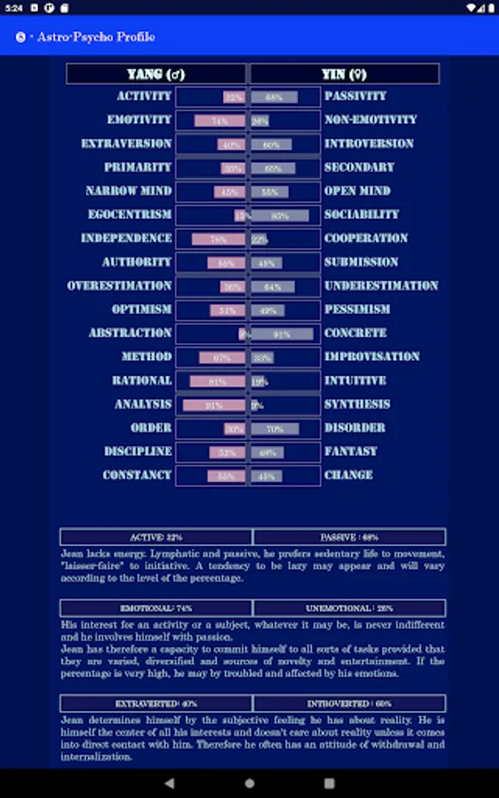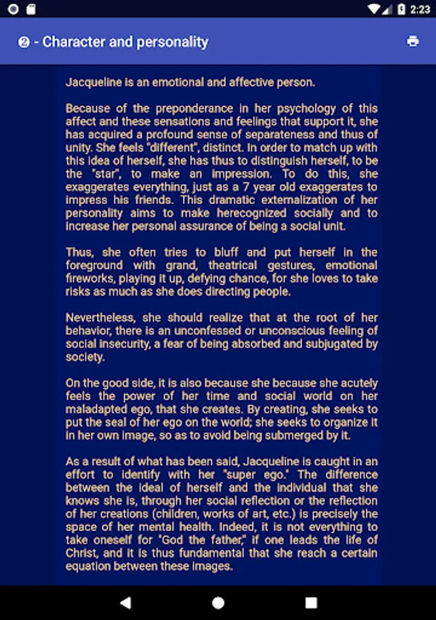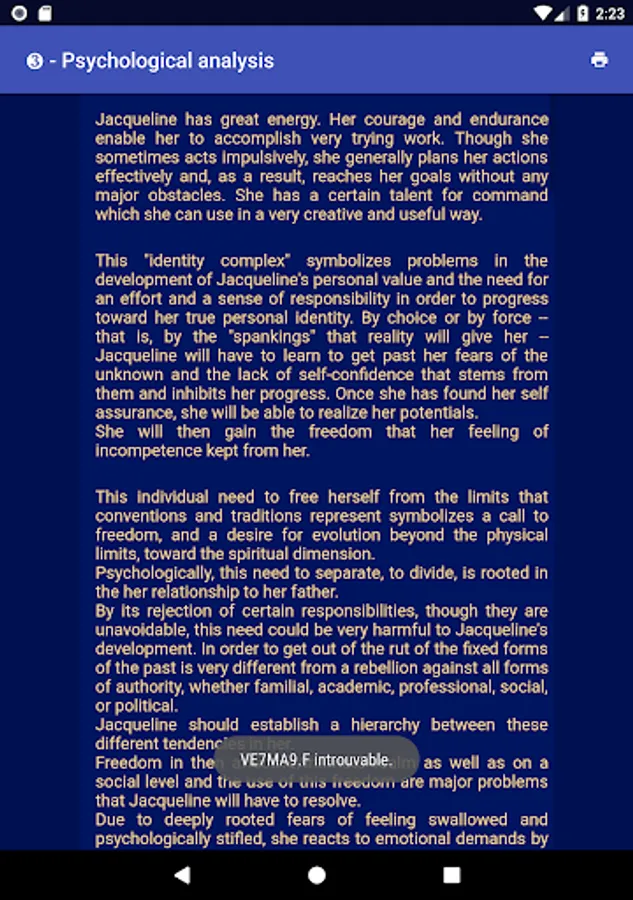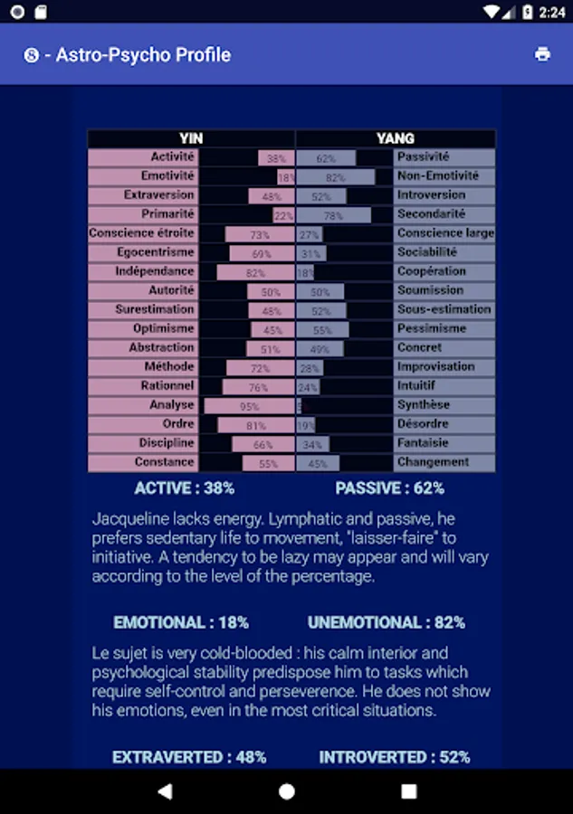 The free version of the app is fully functional. The interpretation of the second chapter (Character and personality) is issued to you free of charge so that you realize the richness of your "Astral Mirror". You can acquire online as much interpretation of astral themes as you want.