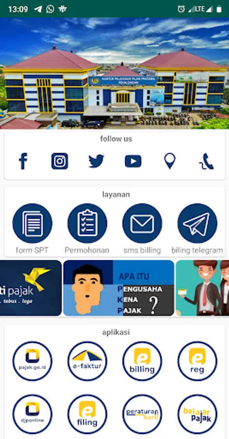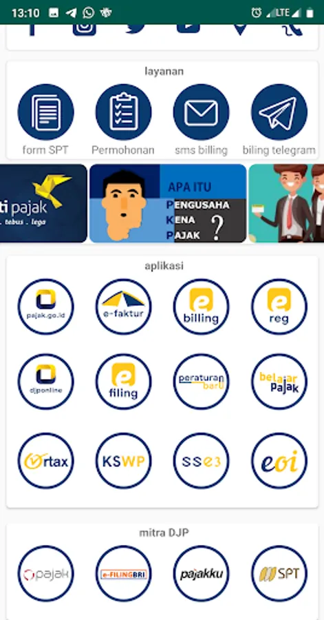 Unite various WEB-based tax applications in one application, for example tax.go.id, e-invoicing, e-billing, e-registration, djponline, tax regulations, tax learning, ortax, kswp, sse 3, and EOI