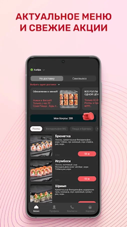 The Banzai mobile app is a new convenient way to order food anywhere in the city. Tasting our Sushi and Rolls has never been easier! The application provides you with a quick and easy order of food, a bonus program that is beneficial for you, an always up-to-date and colorful menu, delicious photos, promotions and fresh news, feedback and our contacts!