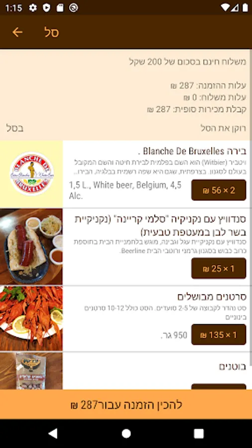 For Krayot Area - with a minimum order amount of NIS 150 and above - NIS 25, from NIS 200 and above - NIS 20.