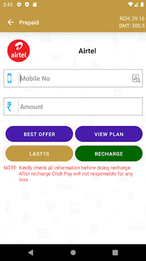 Recahrge:User can do all type of mobile and DTH Recharges.