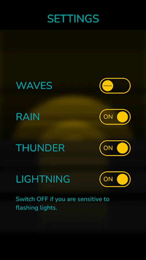 • Have your device flash fill your room with lightning that flickers on your closed eyelids to immerse yourself even deeper into the soundscape.