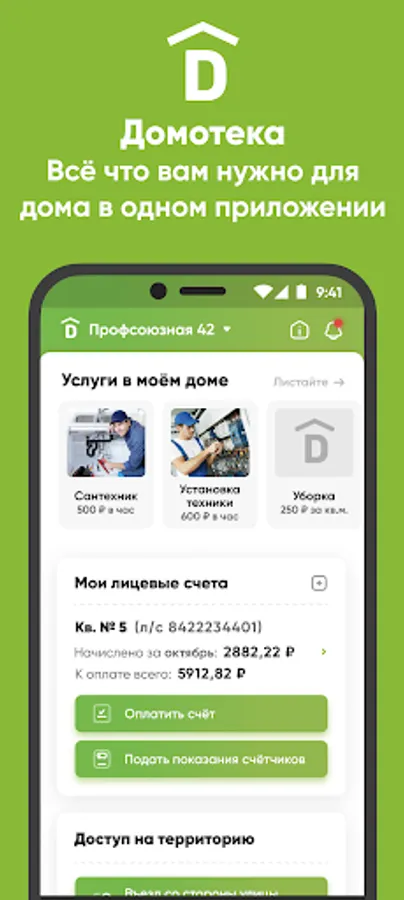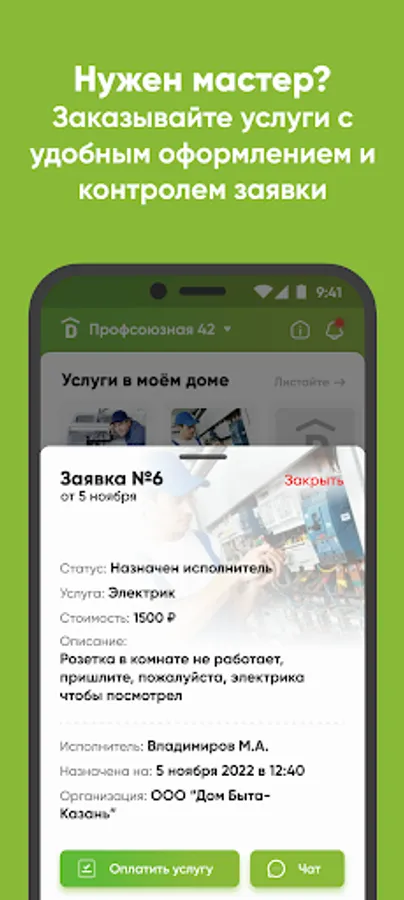 – Get additional services in your apartment (call an electrician, plumber and more)