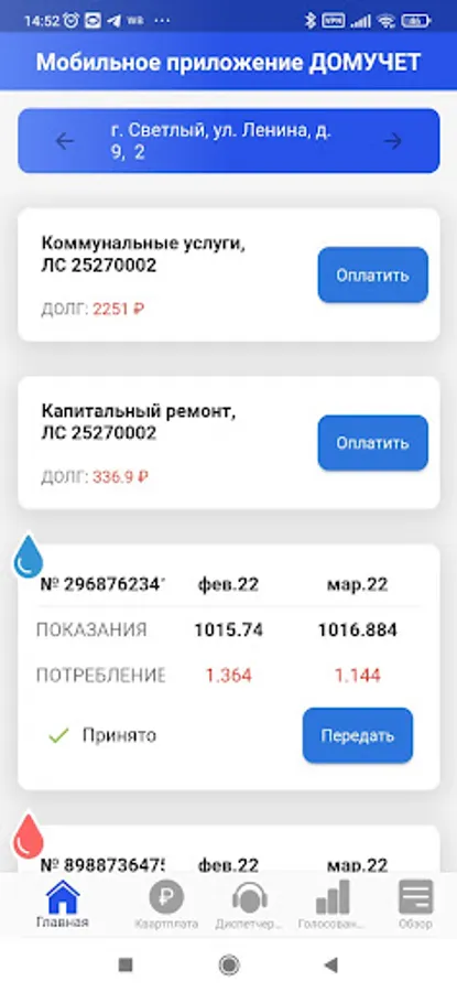 The mobile application is intended for residents of houses whose management companies use the Domuchet service (domuchet.online)