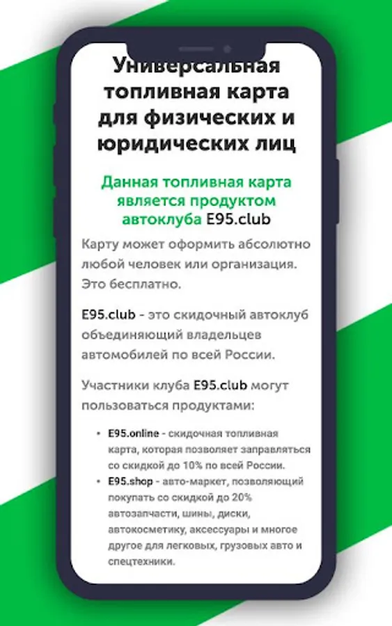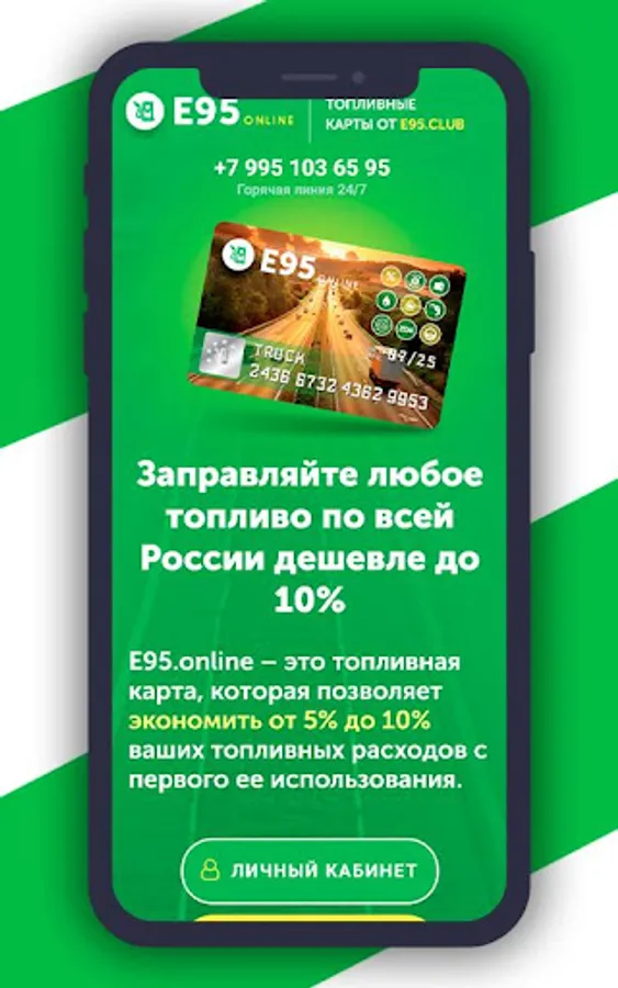 E95.online is a fuel card that allows you to save from 5% to 10% of your fuel costs from its first use.