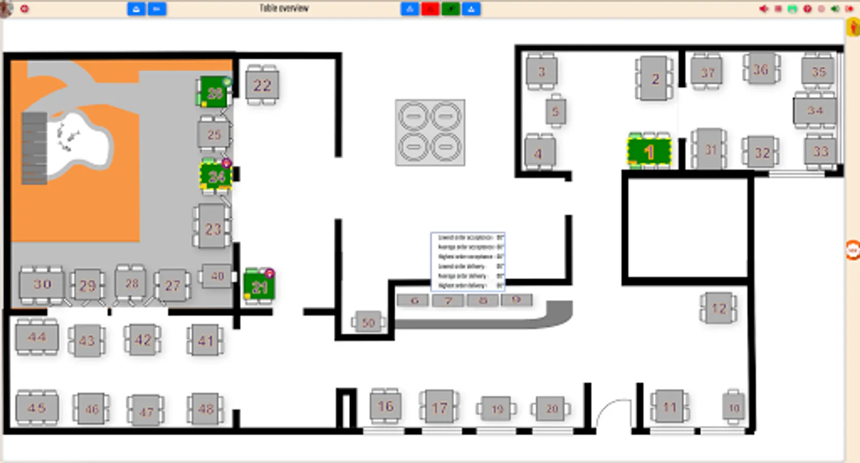 Avoid the chaos that occurs under heavy loads. Our system keeps track of your orders from their registration until their delivery and automatically draws attention to troubled tables and long-awaiting guests.