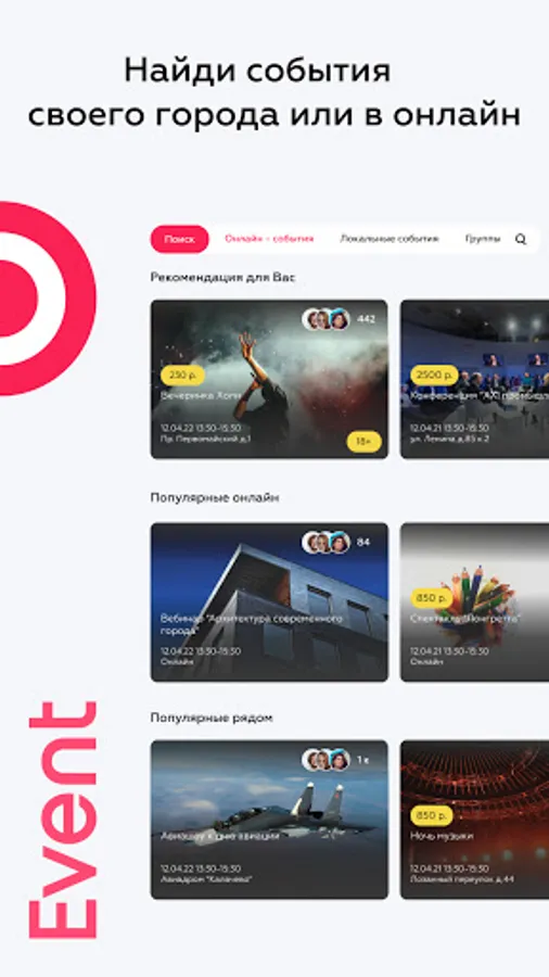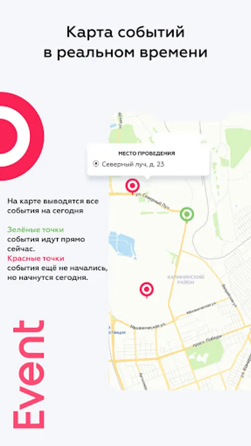 - find out what is happening near your home today, what events are on the next street or in another city where you are traveling. Real-time events are displayed on the map.