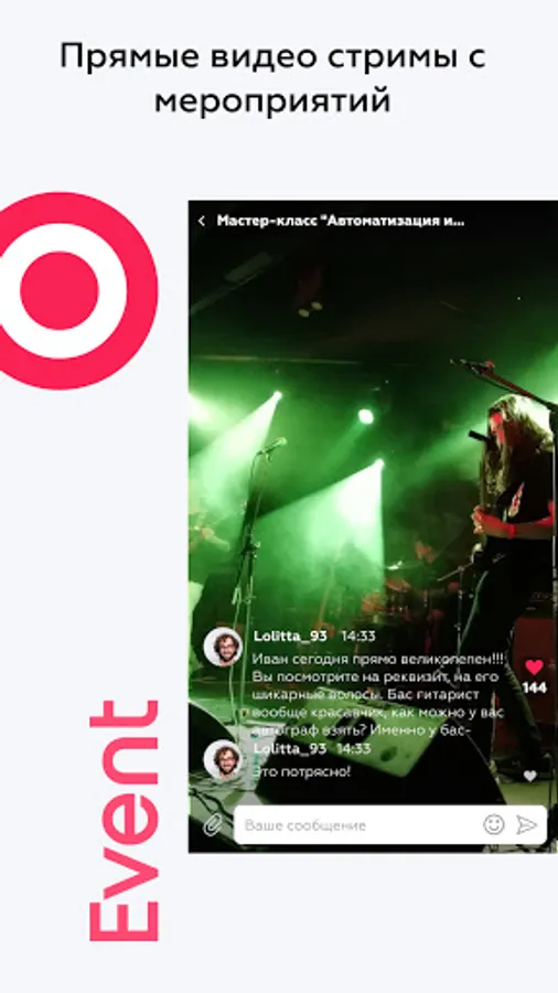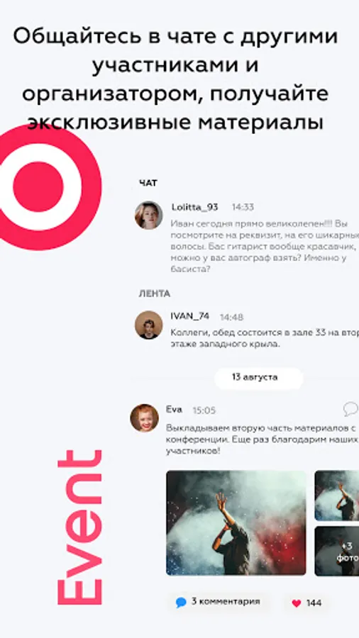 - use the participant's office during the event: stay in touch with the organizer in the chat, download photos and files through the news feed and share contacts with other participants;
