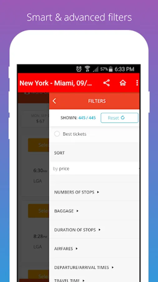✓ Filter results by rating, the quickest flight, departure, and arrival hours.