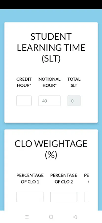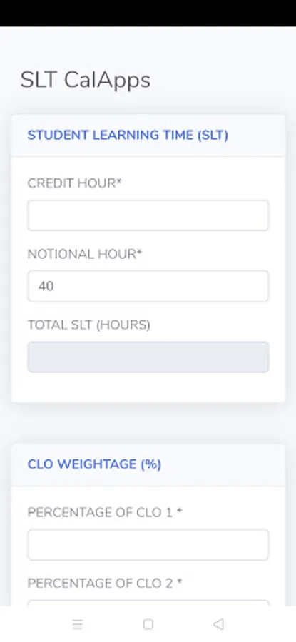 This apps will ease the lecturer in calculating the SLT and at the same time help the faculty to monitor and check the SLT. SLT calculator apps can be used to make sure it complies with the Constructive Alignment (CA). It is cost effective and easy to access using your smart phone plus it can facilitate MQA process in term of documentation especially during audit.