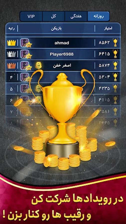 ✔️ تورنمنت های هفتگی و ماهانه !
