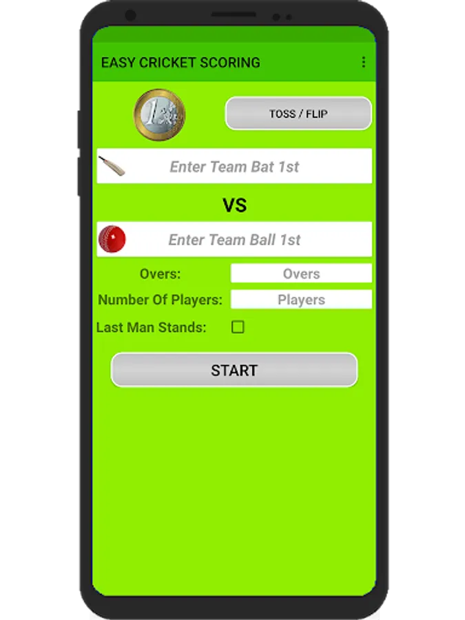 This app provides the easiest and simple way to do scoring for cricket matches and give you the possibility of toss at start. It has a user friendly interface so anyone can use it easily. There is no need to insert batsmen and bowlers name, just enter teams name and overs to start the scoring. For second inning there are also "remaining score" (target score) and remaining balls feature. App is especially deign to save paper and time. It's a fast cricket scoring app. The boys who play locally in the streets then can also easily use this app.