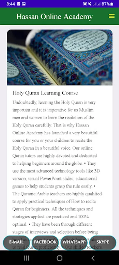 If you would like to be taught by a professional instructor in Arabic, English, Dari or Pashto, please send us a message via WhatsApp, Skype, Facebook or email address.