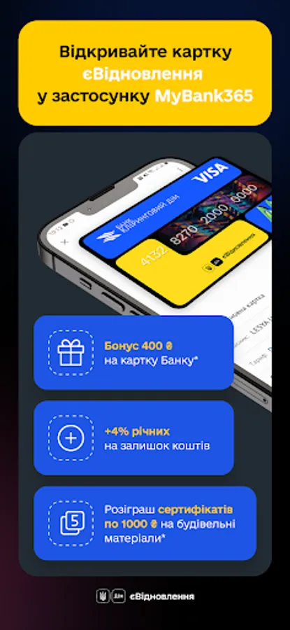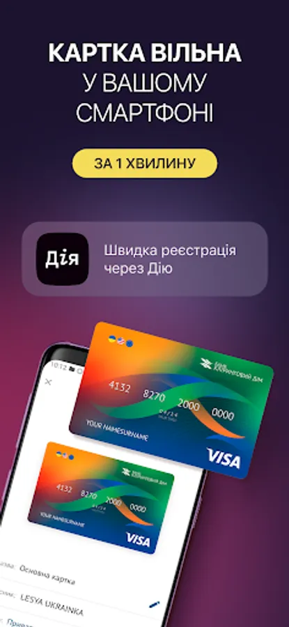 Registration in the application using Diia.Signature for new clients, or by card number for all clients of JSB "CLEARING HOUSE".