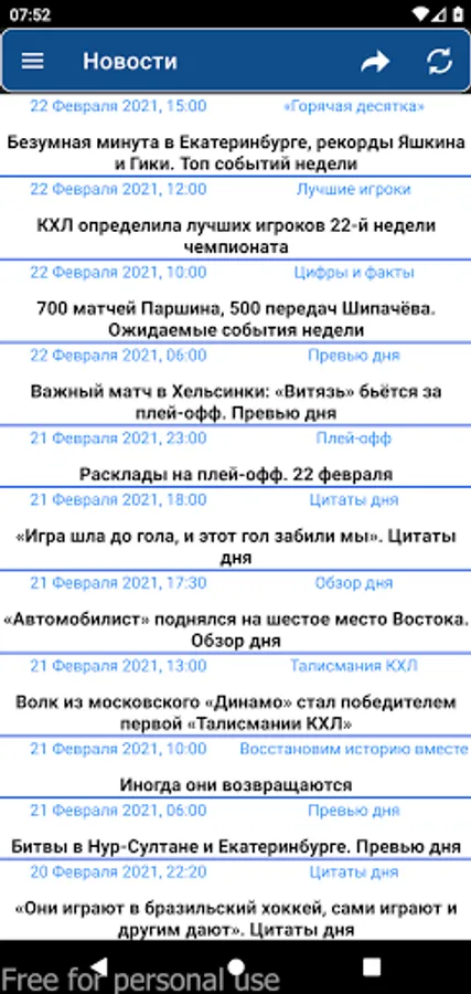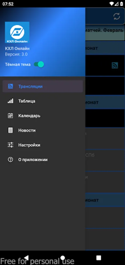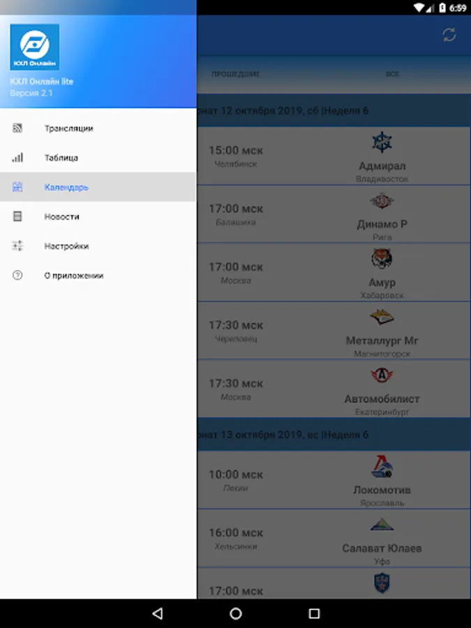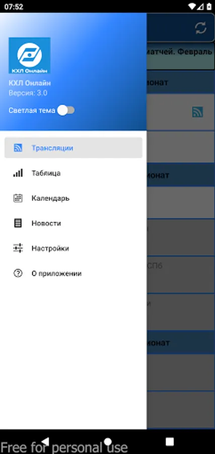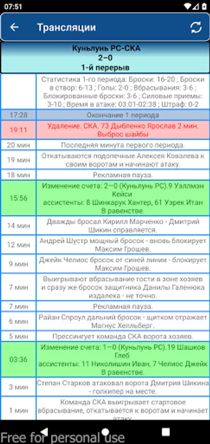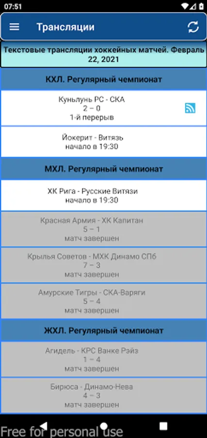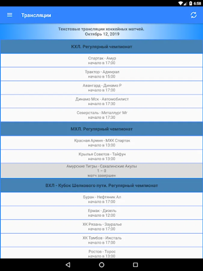 The application serves as a convenience for viewing online text broadcasts of hockey matches: KHL, VHL, MHL, NMHL, etc.