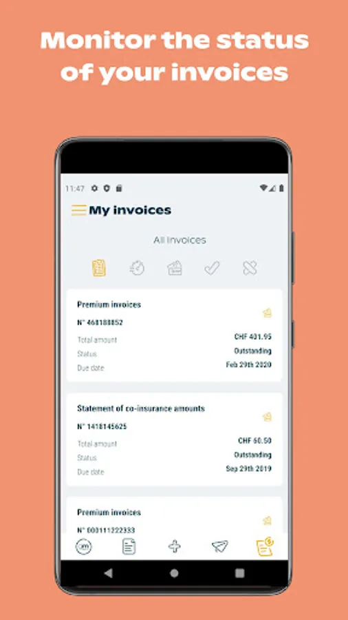 • Find all your documents in one place (insurance certificates, statement of benefits, letters, tax certificates, etc.)