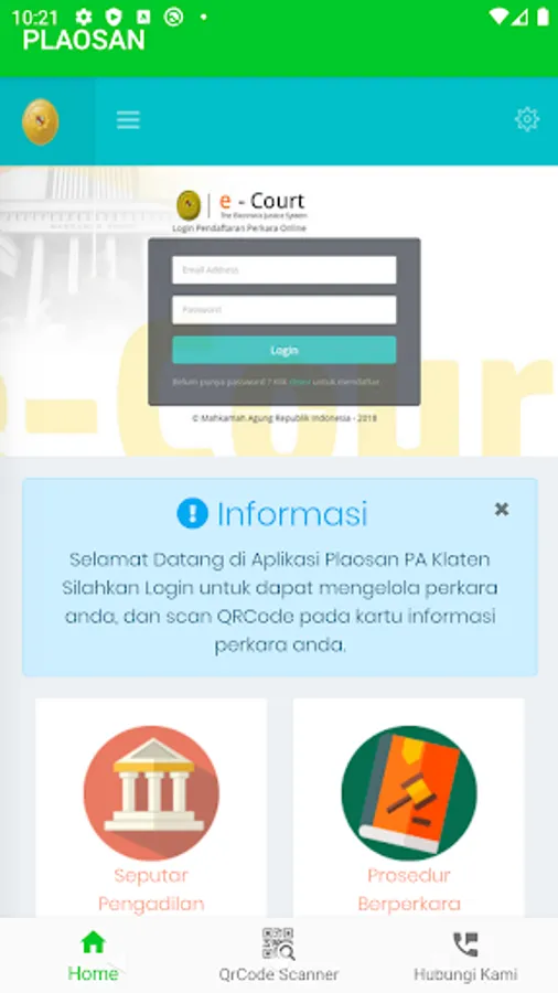 The justice seekers can also see the case information and take the trial queue number in accordance with the trial schedule that has been determined through this PLAOSAN application by scanning the QR Code on the Case Service Card that has been given during the case registration or through the registered mobile number.