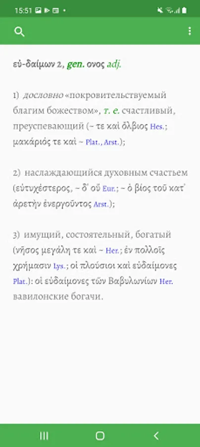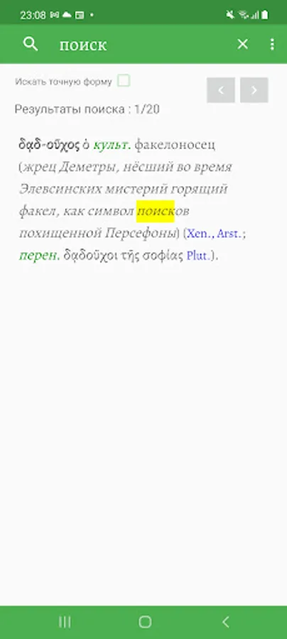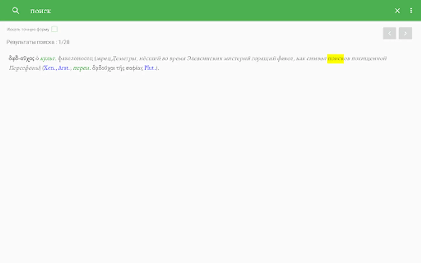 Ancient Greek-Russian dictionary, created on the basis of an electronic database provided by the developer of the famous Alpha dictionary, Sergei Gurin