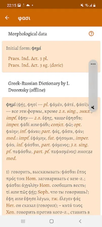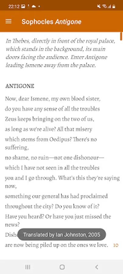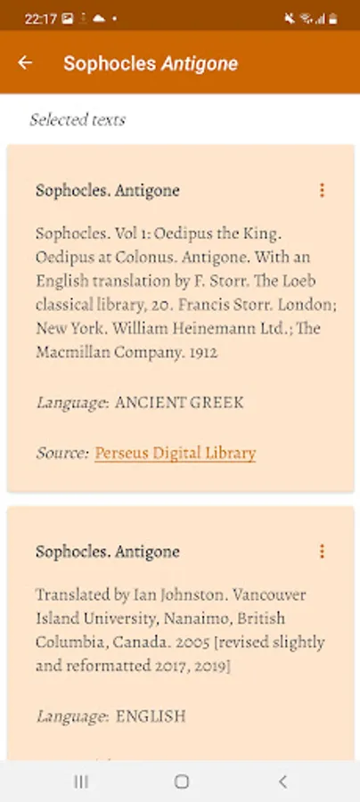 Electronic library of texts by classical Greek authors including Homer, Hesiod, Aeschylus, Sophocles, Euripides, Aristophanes, Pindar, Theocritus and Callimachus. The library contains texts in Ancient Greek with parallel translations into modern languages such as English, German, Modern Greek, Russian, Ukrainian, Czech and Polish. The application shows grammar information for any selected Greek word form and uses a set of over 10 online and offline dictionaries.