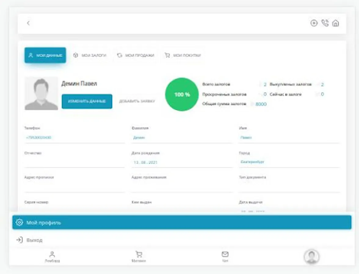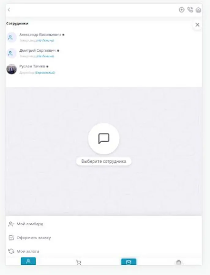 Our specialists work on departure in exactly the same way as in a simple pawnshop office, only the documents for the pledge are prepared in advance. The assessment and calculation of the collateral takes place online, which allows you to know in advance the amount of the overpayment. And the property that you have pledged is moved to the nearest branch next to your house. That allows you to redeem it at any convenient time.